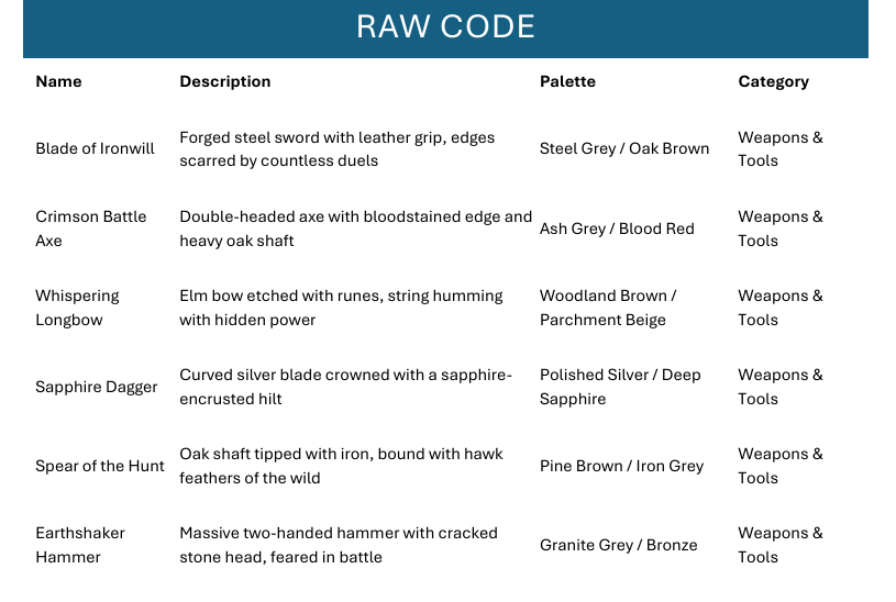 Inside, you’ll find a collection of handcrafted prompts designed to generate unique and versatile fantasy items for your games.